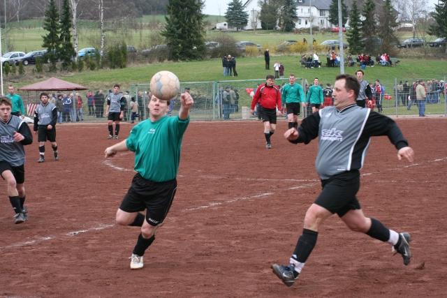 ... hat der TuS Drommershausen sich auch dank des unermüdlichen Einsatzes von Oldie Uwe Hauptvogel (l.) auf Platz acht verbessert und ist seit fünf Begegnungen in Folge ungeschlagen. Spielbericht folgt von Andreas Knörr.