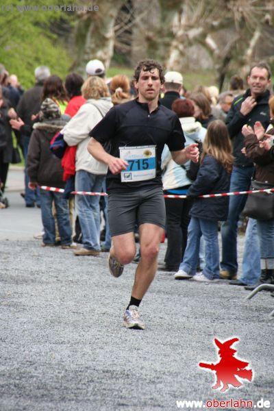 ... Eine ganz andere Taktik hatte Mario Heil aus Drommershausen gewählt. Der ehemalige Landesliga-Fußballer ließ es bei seinem ersten Marathon ruhig angehen. „Die ersten 30 Kilometer sind mir von der Luft her nicht besonders schwer gefallen, und das trotz der Steigungen“, sagte er. Als Fußballer ist Heil Trainingsläufe von zehn bis 15 Kilometern Umfang gewohnt. Doch ab Kilometer 30 erwischte es auch ihn. „Die Muskeln haben zu schmerzen begonnen, und auf den letzten fünf Kilometern war es besonders schlimm“, erinnerte er sich. Im Ziel angekommen war er jedoch hochzufrieden. „Ich wollte eine Zeit unter fünf Stunden laufen. Unter vier sind es geworden.“ Die Zeit von 3:42:00 Stunden brachte ihm Platz 227 ein. Schneller als Heil waren aus dem Kreis Limburg-Weilburg nur 20 Läufer. 70 Männer und acht Frauen aus diesem Landkreis hatten das Ziel erreicht.