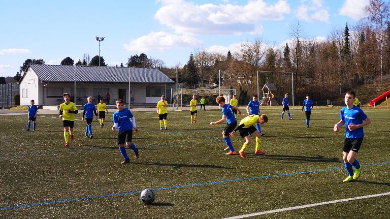 Durch einen Abstauber von Cedric Lehnhardt kurz vor dem Abpfiff entführte die C-Jugend beim 3:2 (2:2)-Sieg bei der JSG Mengerskirchen/Waldernbach/Winkels/Probbach mit einer gehörigen Portion Glück alle drei Punkte. Die Westerwälder, die sich wegen einer langen Ausfallliste mit der "halben" D-Jugend verstärken mussten, waren einen Tick besser und leisteten sich den Luxus, einen Foulelfmeter zu verballern. In Halbzeit eins hatten Szymon Urbaniak und Malte Schmidt mit ihren ersten Treffern überhaupt unsere Jungs zweimal in Führung geschossen, die Heimelf hatte umgehend ausgeglichen. Es war das erste Spiel unseres Teams in der nun auf dem Großfeld ausgetragenen, neu formierten Gruppe 2 der Kreisklasse, nachdem die Mannschaft zuvor C9 gespielt hatte.