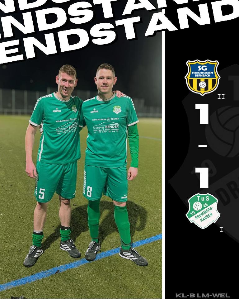 Es sind die Geschichten, die nur der Fußball schreibt. Ausgerechnet Christian Kopp erzielte bei seinem Debüt im am Sonntagabend um 18 Uhr auf dem Braunfelser Kunstrasen angestoßenen Derby bei der SG Hirschhausen / Bermbach in der 82. Minute den Ausgleich zum 1:1 (0:0)-Endstand. Für den Stürmer, der in seiner frühen Kindheit in Drommershausen wohnte, wo seiner Mutter herstammt, schließt sich nach seinem Wechsel von der SG Oberlahn nun ein Kreis. Zum einen stürmte schon sein Vater Andreas viele Jahre für den TuS und war Bestandteil der ersten Meister-Mannschaft in der Vereinsgeschichte Anfang der 1990er, zum anderen steht er nun wieder - wie schon zu Zeiten der SG Kubach/Edelsberg - mit seinem Bruder Alexander gemeinsam auf dem Platz. Mit diesem Remis und einem gemeinsamen Abendessen in Braunfels verabschieden sich die TuS-Buben in die Winterpause.