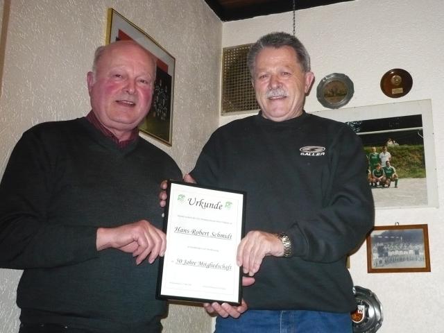 ... auf der Tagesordnung gestanden, dann wäre die Jahreshauptversammlung des TuS „Grün-Weiß“ Drommershausen schon nach 25 Minuten beendet gewesen. So aber dauerte die Tagung, der nur 22 der 170 Mitglieder beiwohnten, über eine Stunde. Dabei diskutierte die Versammlung über die zwar solide, aber erneut von steigenden Ausgaben bei sinkenden Einnahmen geprägte Finanzsituation des Vereins, die durch Schäden bei zwei Einbrüchen zusätzlich belastet worden ist. Da die sportliche Situation der Senioren in der B-Liga, die jedoch unter der ersten Trainerentlassung seit 20 Jahren (Michael Quabius für Hendrik Hauzel) litt, ebenso befriedigend ist wie die personelle Ausstattung der Alten Herren, und die Vereinsveranstaltungen sehr gut besucht waren, hatte die Hauptversammlung insgesamt einen positiven Anstrich. Dazu trug auch die Ehrung durch den Vorsitzenden Reimund Böhlmann bei, der Hans-Robert Schmidt für 50-jährige Mitgliedschaft auszeichnete. Für das laufende Jahr gab der Vorstand noch folgende Termine bekannt: Aktion Saubere Landschaft (29., März, 9 Uhr), Vereinsausflug nach Prag (22. bis 25. Mai), Bäuchlingsessen (Pfingstsonntag, 11. Mai, ab 11 Uhr), Kirmes (5. bis 7. September), Oktoberfest (3. Oktober, 12 Uhr), Weihnachtsfeier (20. Dezember, 20 Uhr).