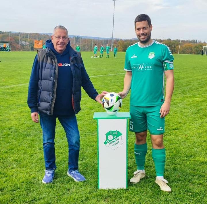 Das war ja mal eine Überraschung: Vor der Partie der Zwoten gegen die SG Hangenmeilingen/Niederzeuzheim überraschte unser Stand-by-Keeper Kay Kuhrig, der einmal mehr in die Bresche springen musste, die Mannschaft, als er gleich zwei Bälle an Kapitän Christian Brückner überreichte. Und damit nicht genug: Auch Uli Euler machte sein Versprechen von der Kirmes wahr und reihte sich in die Riege der Ballsponsoren ein. Die sofort in Beschlag genommenen Spielgeräte fanden zur allgemeinen Freude in den folgenden beiden Partien insgesamt gleich sieben Mal den Weg in des Gegners Gehäuse. Besten Dank, Jungs. Wer uns auch einmal unterstützen möchte, gerne auch eins unserer Jugendteams, meldet sich per PN an dieser Seite oder per Mail an tus-drommershausen@gmx.de