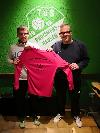 ... ist Chris Schmidt, aufgrund seines unermüdlichen Einsatzes rund um die zweite Mannschaft. Das entsprechende Shirt überreichte Daniel Schmidt (l.), der die Wahl im September wegen seiner starken Leistungen als Aushilfskeeper gewann.